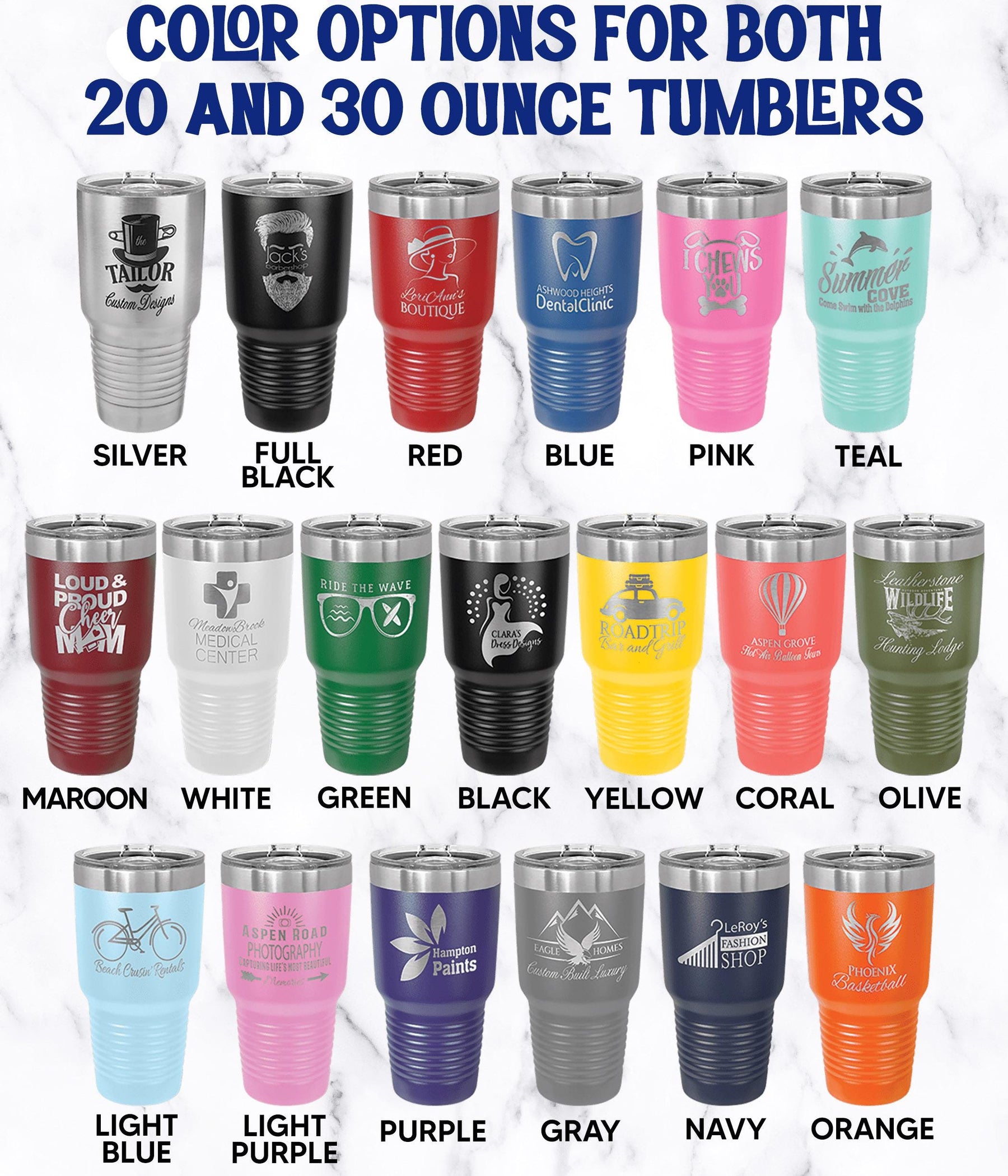 * Each tumbler is custom-made to order, and final engraving placement may vary slightly from sample images.