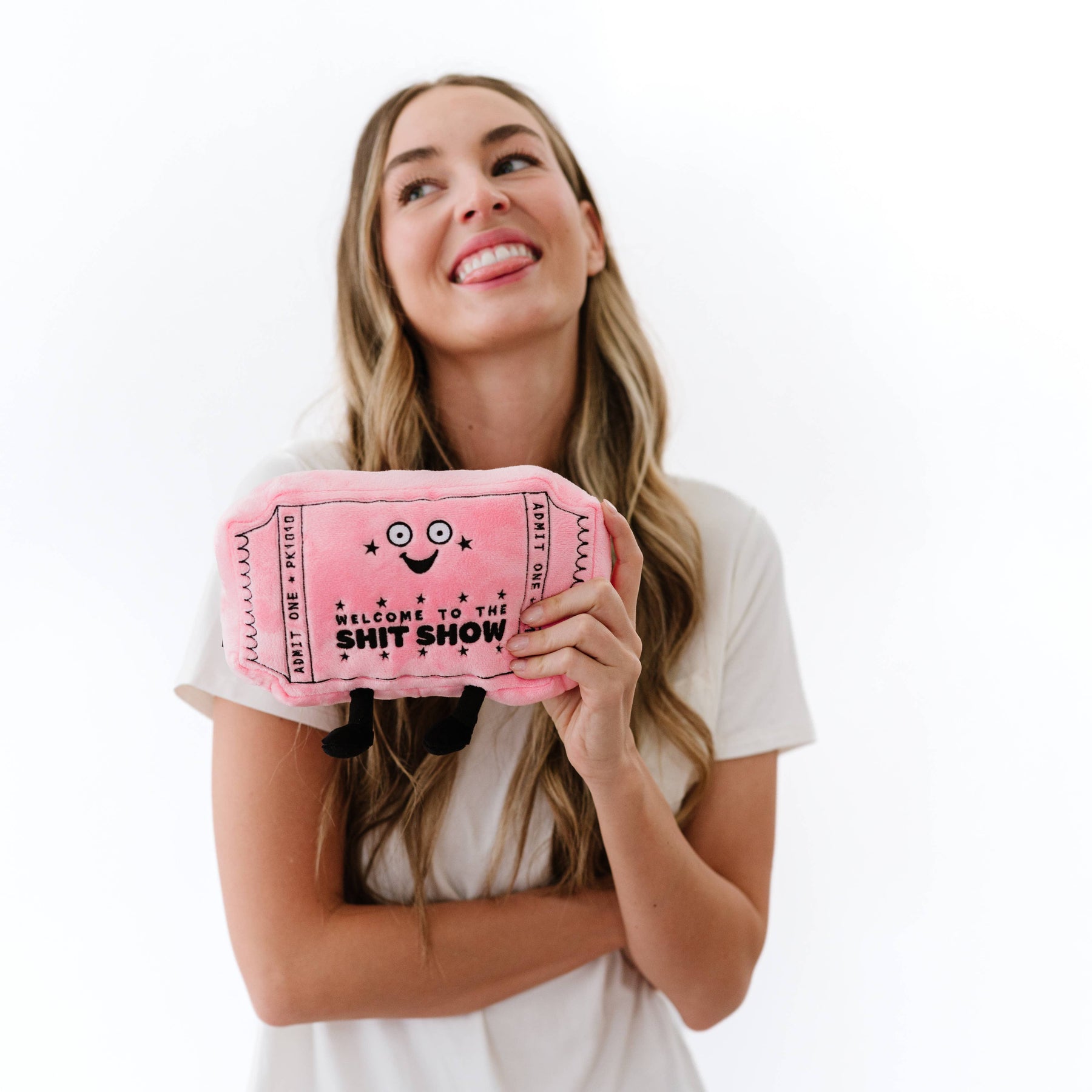 If life feels a little chaotic, this plush gets it. Featuring a ticket-stub design with a face full of “barely holding it together” energy, this plush proudly welcomes you to the sh*t show — enter at your own risk.